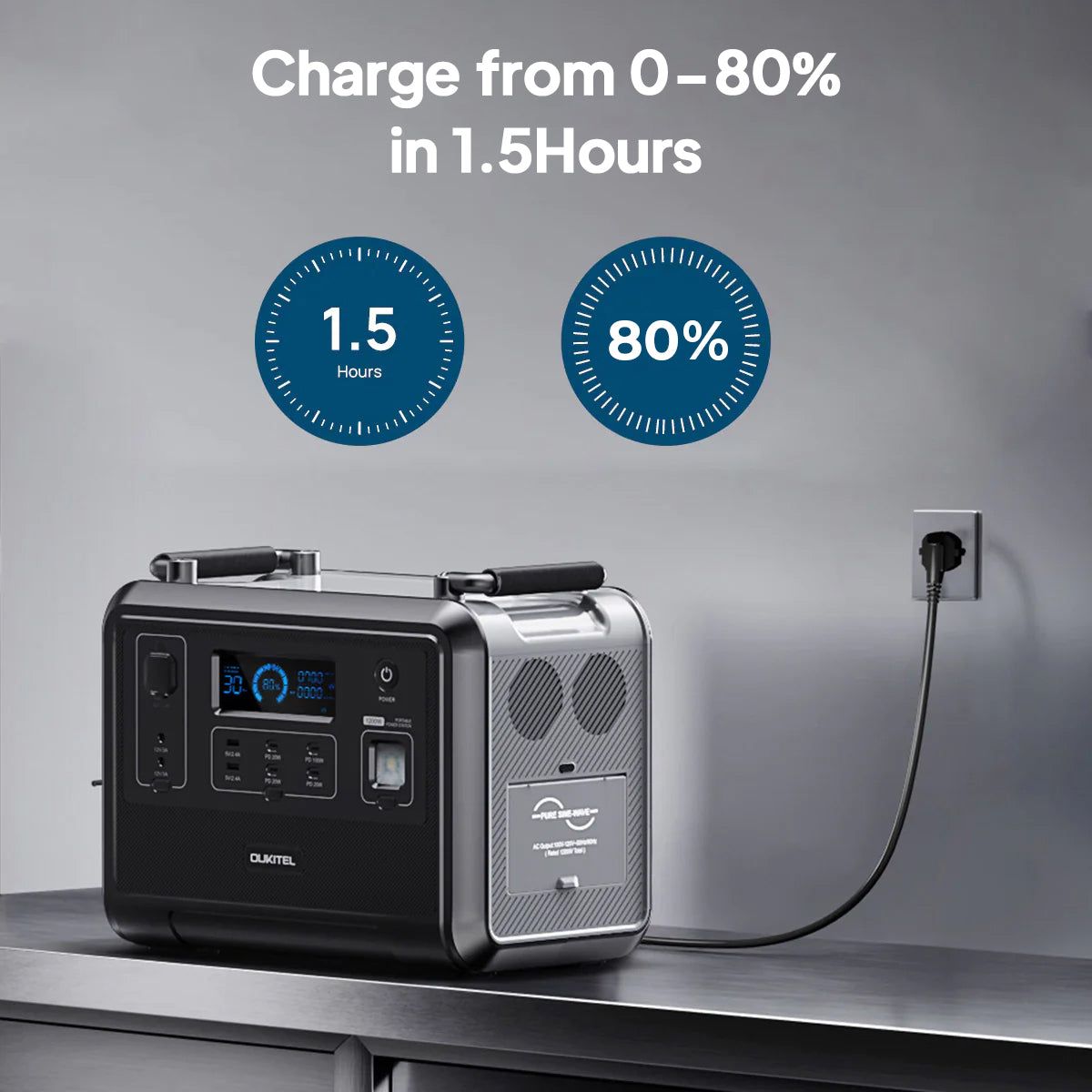 OUKITEL pasižymi itin greitu įkrovimu. P1201 įkraunama nuo 0 iki 80% per 1,5 valandos naudodami namų sieninius lizdus.